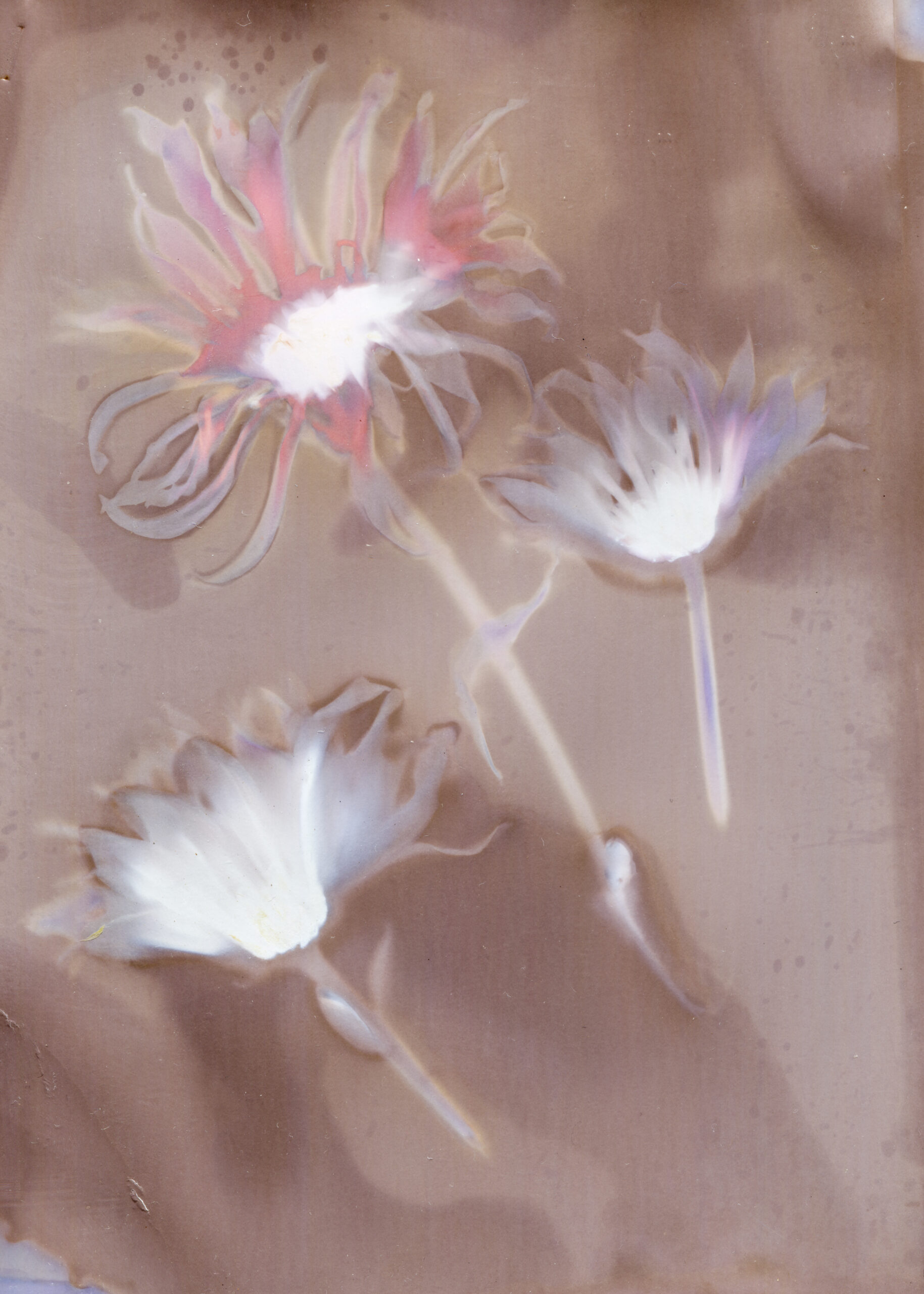 My darkroom experiments mainly include photograms and chemigrams. I have been experimenting with environmentally friendly developers, using materials such as coffee, red wine, and herbal teas including rosemary, green tea, and peppermint. In addition, I also create luminograms and lumen prints.